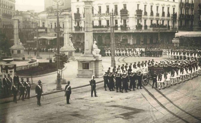 Στην φωτογραφία που έχει τραβηχτεί την 1η Φεβρουαρίου 1936 βλέπετε την πλατεία Ομονοίας και την πομπή με την σορό του στρατηγού Γεώργιου Κονδύλη που οδεύει στην Μητρόπολη για την τέλεση εξόδιου ακολουθίας.