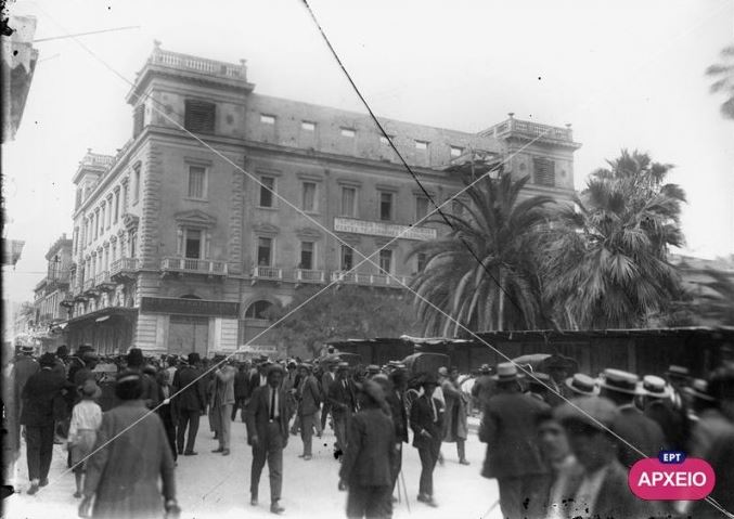 Στη φωτογραφία, η οποία αποτελεί μέρος του πλούσιου αρχείου της ΕΡΤ και της συλλογής Πέτρου Πουλίδη, φαίνεται άποψη του Κεντρικού Ταχυδρομείου, πρώην Μέγαρο Β. Μελά, στην Πλατεία Κοτζιά. Το στιγμιότυπο είναι του 1925.