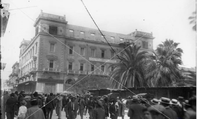 Στη φωτογραφία, η οποία αποτελεί μέρος του πλούσιου αρχείου της ΕΡΤ και της συλλογής Πέτρου Πουλίδη, φαίνεται άποψη του Κεντρικού Ταχυδρομείου, πρώην Μέγαρο Β. Μελά, στην Πλατεία Κοτζιά. Το στιγμιότυπο είναι του 1925.