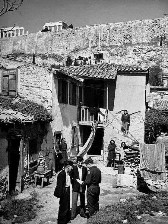 Στη φωτογραφία που έχει τραβηχτεί το 1946 βλέπετε την συνοικία Μακρυγιάννη στα σύνορα με την Πλάκα.
