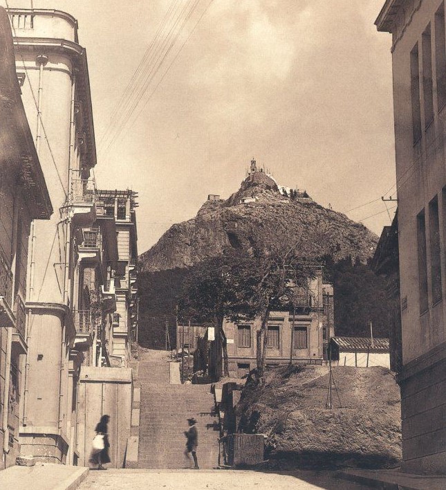 Στη φωτογραφία που έχει τραβηχτεί το 1930 βλέπετε το Κολωνάκι και στην συμβολή των οδό Λυκαβηττού και Σκουφά.