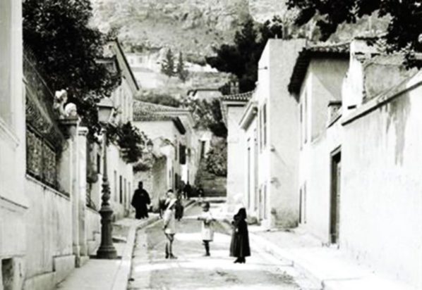 Στη φωτογραφία (φωτογράφος: Fred Boissonnas) που έχει τραβηχτεί το 1900 βλέπετε την Πλάκα και την οδό Μνησικλέους.