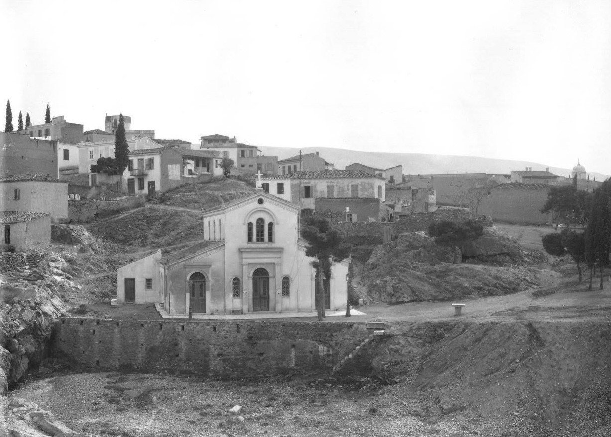 Στη φωτογραφία που έχει τραβηχτεί το 1910 βλέπετε το Μετς και την εκκλησία της Αγίας Φωτεινής στον ποταμό Ιλισσό. Στην εικόνα του φωτογράφου William J. Woodhouse διακρίνονται αριστερά είναι οι καταρράκτες του ποταμού Ιλισού και πάνω ο μύλος του Αργυρίου.