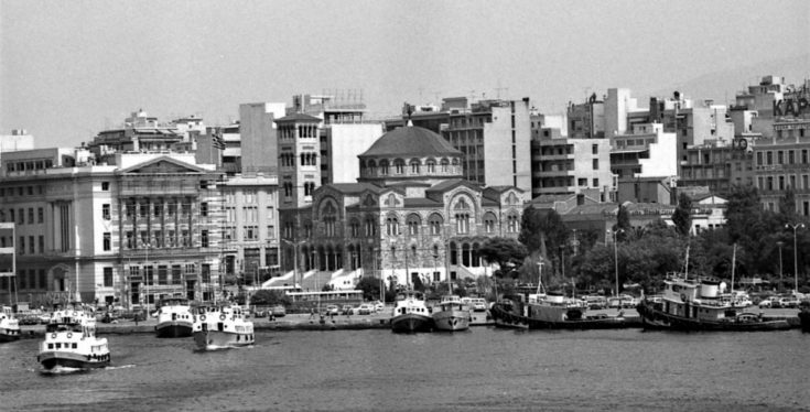 Στην φωτογραφία που έχει τραβηχτεί το 1979 βλέπετε τον Πειραιά και μία άποψη του Ιερού Ναού της Αγίας Τριάδας και του Μεγάρου ΝΑΤ. Η εικόνα ανήκει στον φωτογράφο Boris Carmi.