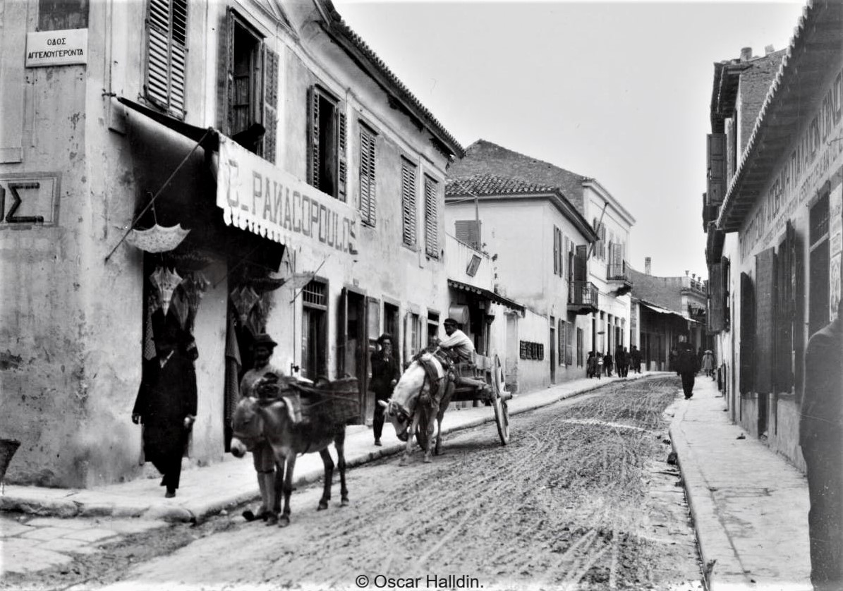 Στην φωτογραφία που έχει τραβηχτεί το 1906 βλέπετε την οδό οδός Αγγέλου Γέροντα μάλλον με την οδό Δαιδάλου στην Πλάκα. Η εικόνα ανήκει στον φωτογράφο Oscar Halldin και βρίσκεται στο αρχείο Moderna Museet.