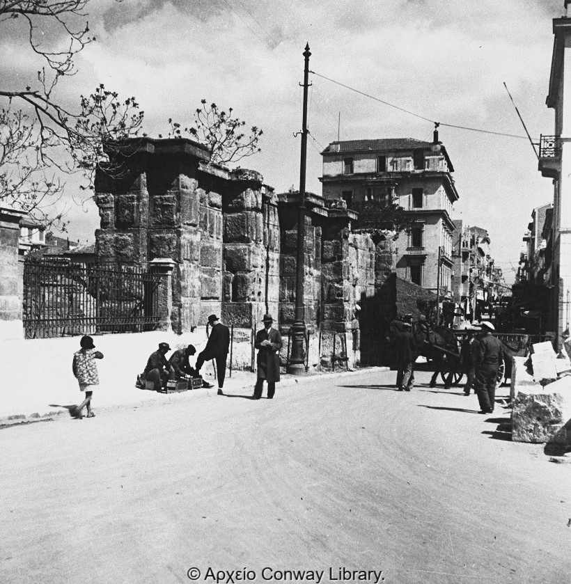 Στην φωτογραφία φαίνεται η οδός Αιόλου στην Πλάκα. Η φωτογραφία έχει τραβηχτεί την δεκαετία του 1930 από άγνωστο φωτογράφο και ανήκει στο αρχείο Conway Libraby.