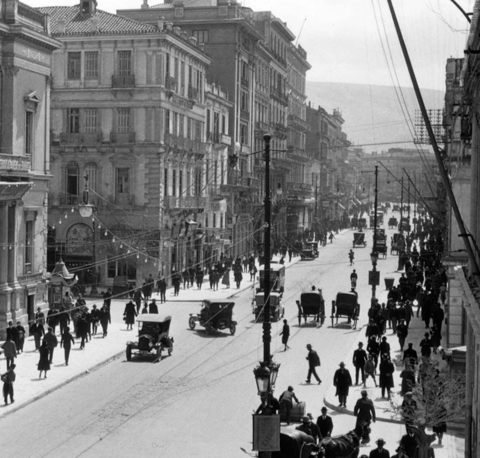 Στην φωτογραφία (πηγή: Η Αθήνα του 19ου και 20ου αιώνα/Athens photo gallery) που έχει τραβηχτεί το 1926 βλέπετε την οδό Σταδίου στο ύψος της Κοραή.