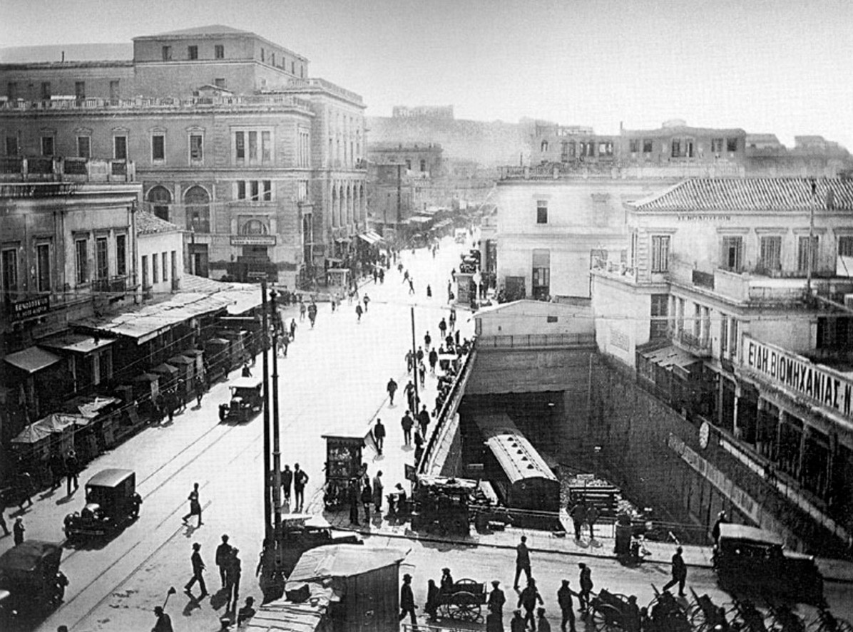 Στην φωτογραφία (Αρχείο ΗΣΑΠ) που έχει τραβηχτεί το 1928 βλέπετε την οδό Αθηνάς στο ύψος της Ομόνοιας.