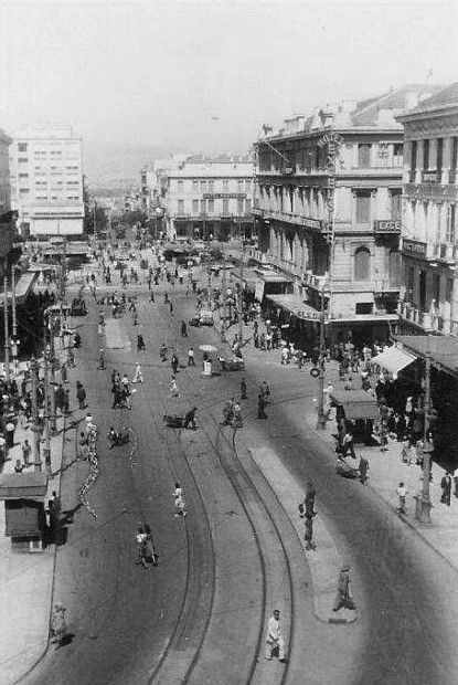 Στην φωτογραφία που έχει τραβηχτεί την δεκαετία του 1950 βλέπετε την οδό Πανεπιστημίου.