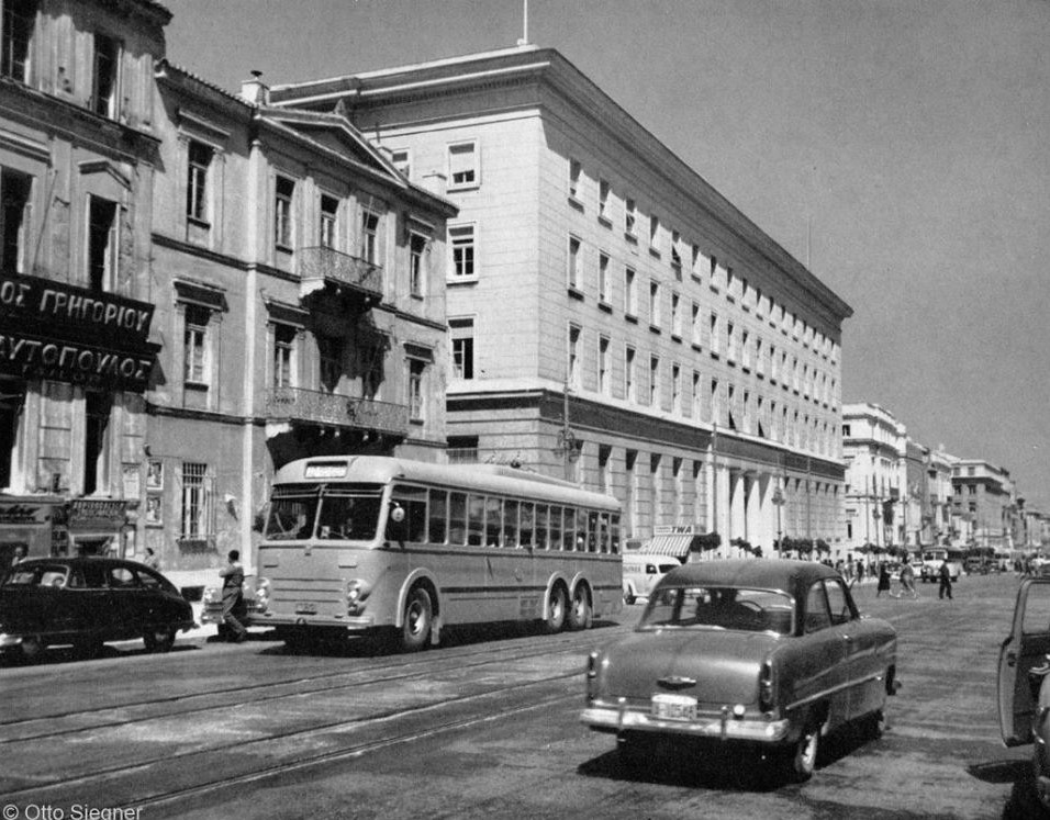 Στην φωτογραφία (Φωτογράφος: Otto Siegner) που έχει τραβηχτεί το 1959 βλέπετε την οδό Πανεπιστημίου στο ύψος της οδού Ομήρου.