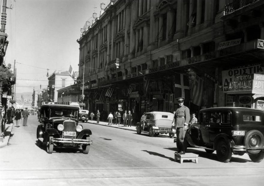 Στην φωτογραφία που έχει τραβηχτεί το 1935 βλέπετε την οδό Σταδίου στο ύψος της Πεσμαζόγλου.