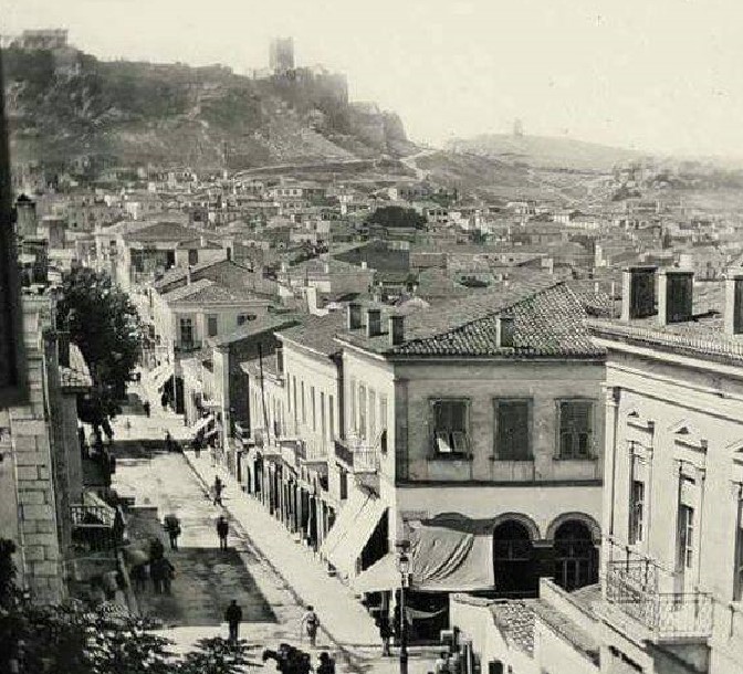 Στην φωτογραφία που έχει τραβηχτεί την δεκαετία το 1870 βλέπετε την οδό Αιόλου. Στην εικόνα του φωτογράφου Konrad Helbig διακρίνεται το Ωρολόγιο του Κυρήστου (Αέρηδες) και η περιοχή της Πλάκας.