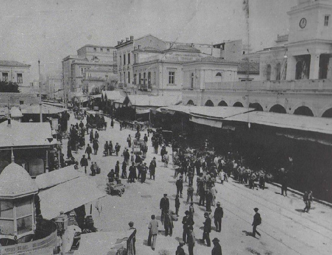 Στην φωτογραφία που έχει τραβηχτεί το 1900 βλέπετε την οδό Αθηνάς και την Βαρβάκειο Αγορά.