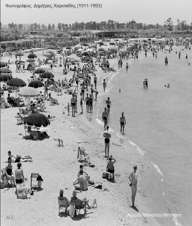 Στην φωτογραφία του Δημήτρη Χαρισιάδη (Αρχείο Μουσείου Μπενάκη) που έχει τραβηχτεί το 1959 βλέπετε την παραλία της Γλυφάδας.