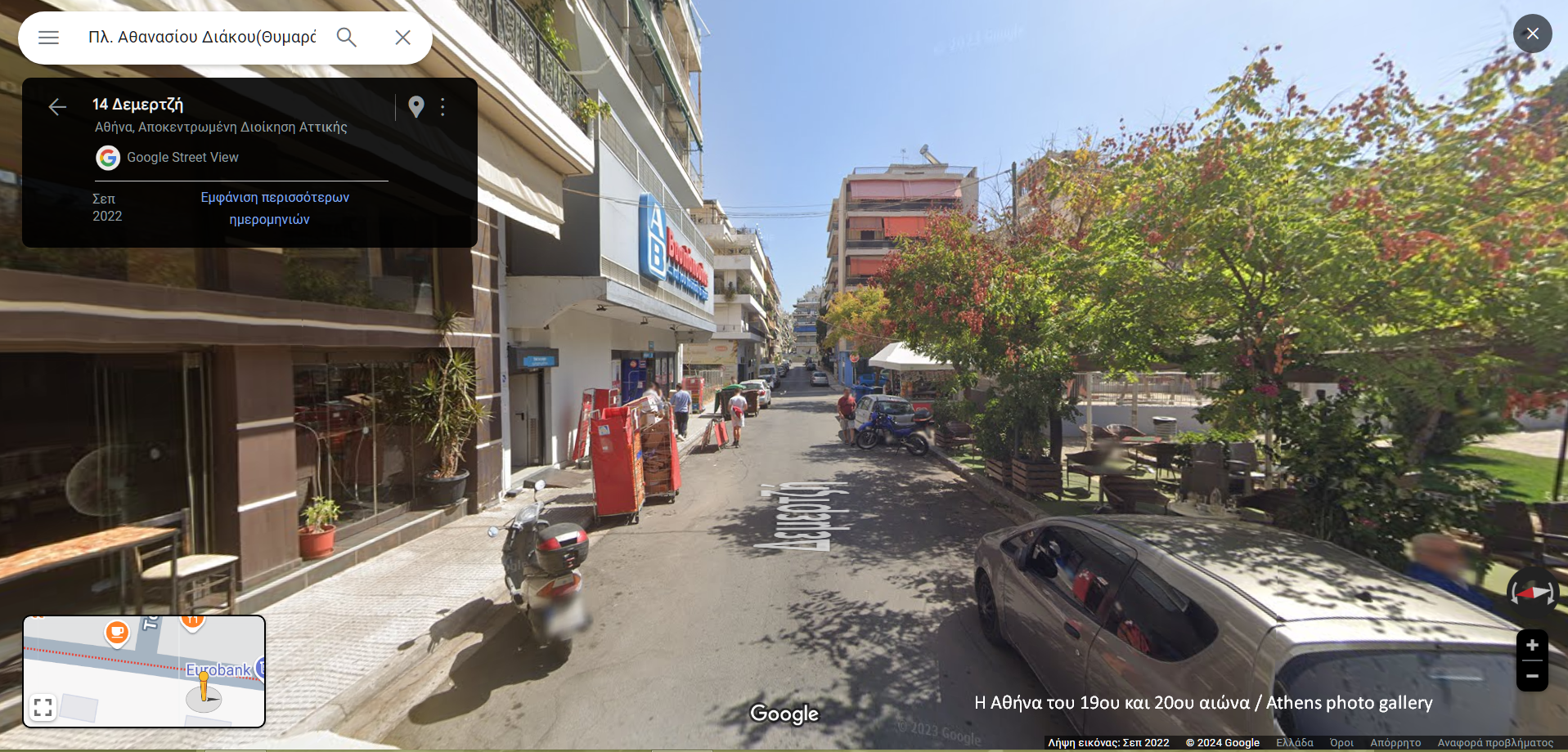 Στην εικόνα βλέπετε την Πλατεία Θυμαράκια, (Πλ. Αθανασίου Διάκου) το 1967. Συγκεκριμένα, φαίνεται η πλατεία από την οδό Ρόδου, απέναντι είναι η οδός Δεμερτζή, το στενό αριστερά είναι η οδός Τσουδερού, και δεξιά η οδός Παπαναστασίου.