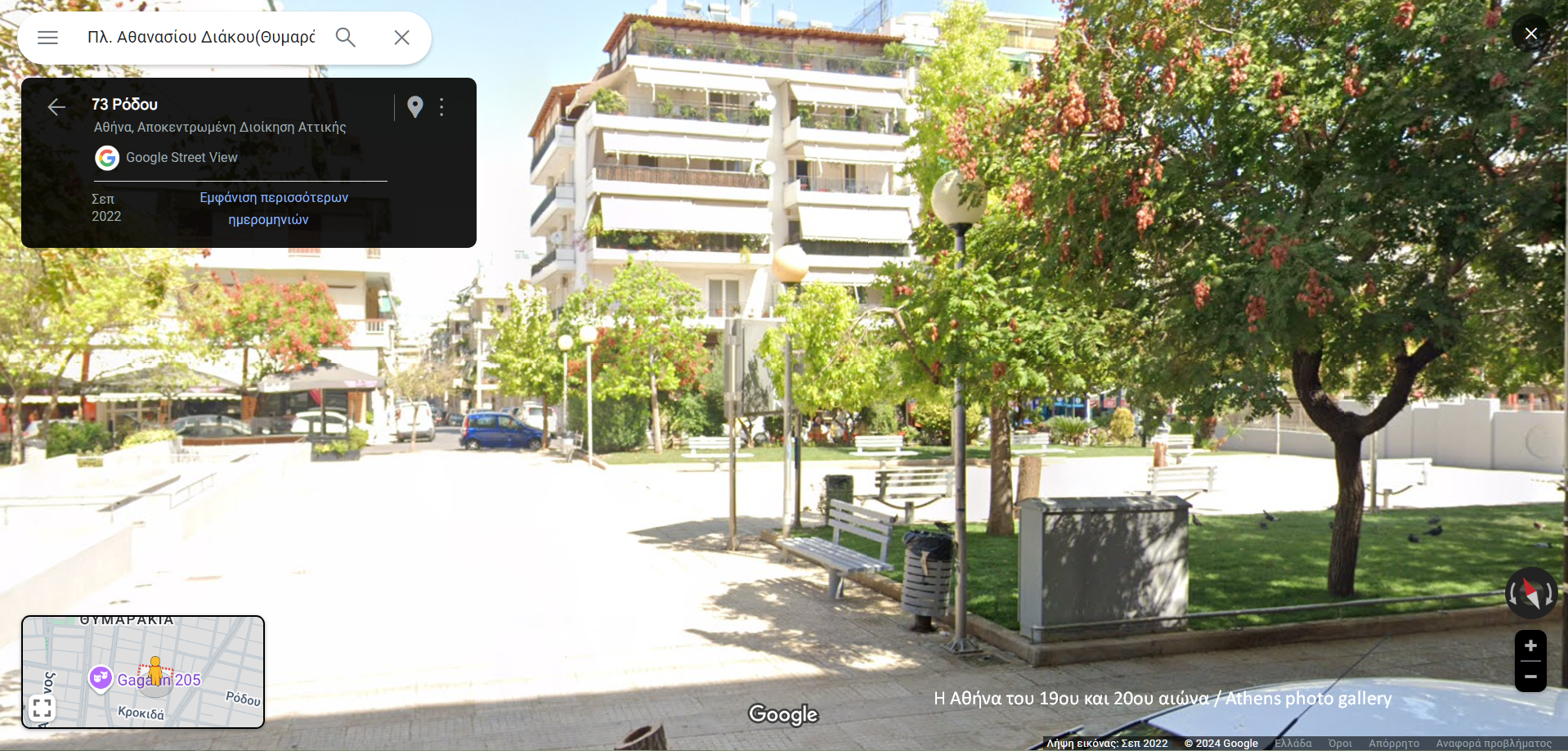 Στην εικόνα βλέπετε την Πλατεία Θυμαράκια, (Πλ. Αθανασίου Διάκου) το 1967. Συγκεκριμένα, φαίνεται η πλατεία από την οδό Ρόδου, απέναντι είναι η οδός Δεμερτζή, το στενό αριστερά είναι η οδός Τσουδερού, και δεξιά η οδός Παπαναστασίου.