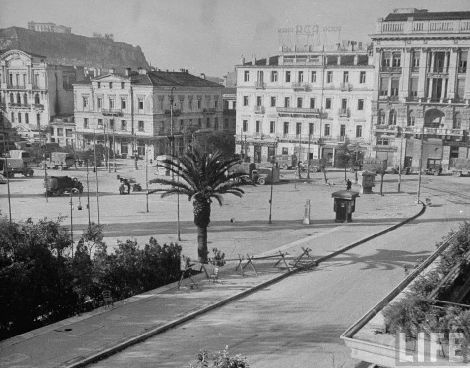 Στην φωτογραφία (Αρχείο LIFE) του φωτογράφου Dimitri Kessel που έχει τραβηχτεί στις αρχές το 1944 βλέπετε την πλατεία Συντάγματος.