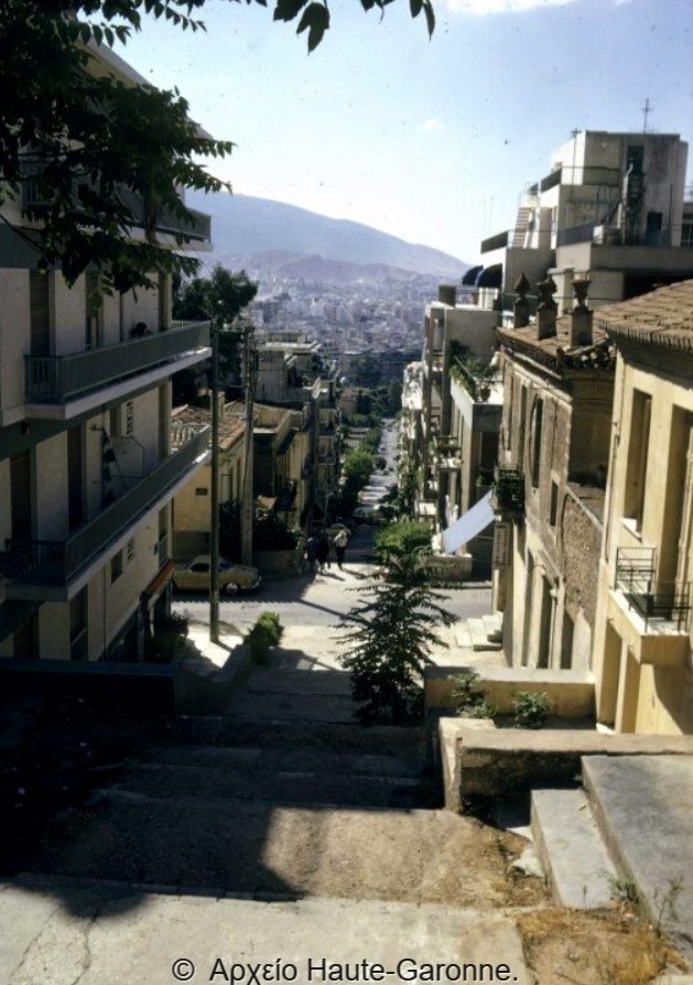 Στην φωτογραφία (αρχείο Haute-Garonne) που έχει τραβηχτεί τον Σεπτέμβριο του 1969 βλέπετε το Κολωνάκι και τις οδού Μαρασλή και Κλεομένους.