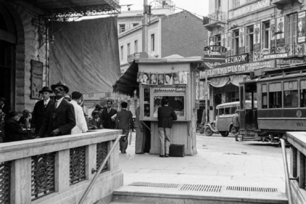 Στην φωτογραφία που έχει τραβηχτεί τον Μάιο του 1934 βλέπετε την πλατεία Ομονοίας, και συγκεκριμένα ένα περίπτερο δίπλα στην οδό Πειραιώς. Δημοσιεύτηκε τη σελίδα Facebook “Liza’s Photographic Archive of Greece – Φωτογραφικά άλμπουμ της Ελλάδας” και είναι από το φωτογράφο Paul Schulz (Αρχείο Deutsche Fotothek).