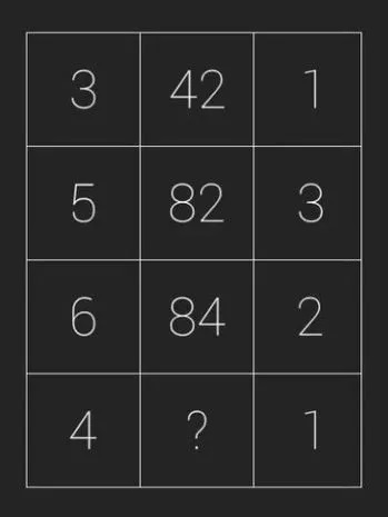 Στην παρακάτω εικόνα υπάρχει ένας πίνακας 3×4 στον οποίο υπάρχουν διάφοροι αριθμοί. Όμως στην 4η σειρά λείπει ο αριθμός από το μεσαίο κουτάκι. Μπορείτε να βρείτε ποιος αριθμός λείπει; Πρέπει σκεφτείτε με διαφορετικό τρόπο για να βρείτε την σωστή απάντηση.