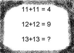 - το 12+12=9 προκύπτει εάν πολλαπλασιάσετε το 12 με το 12 και προσθέσετε τα ψηφία του αποτελέσματος. Δηλαδή 12 x 12 = 144 και 1 + 4 + 4 = 9