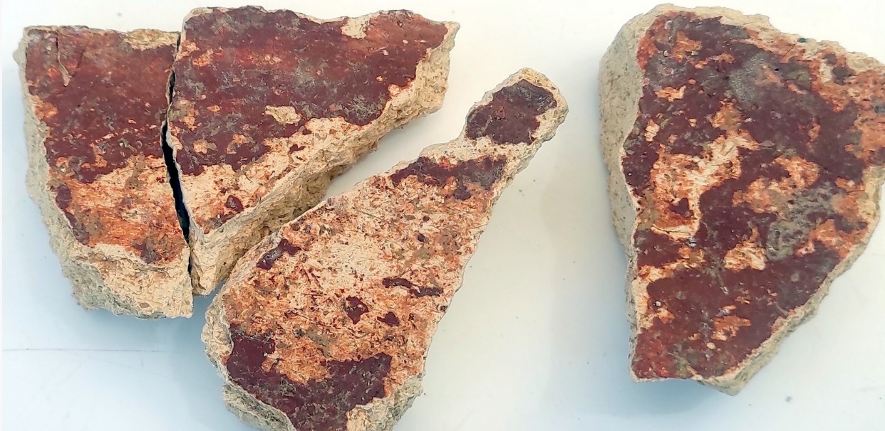 Βρέθηκαν και πεσμένα κονιάματα με τμήματα από τοιχογραφίες, ορισμένα εκ των οποίων σώζουν κυανό και ερυθρό χρώμα. Στο δυτικότερο τμήμα τέλος, αποκαλύφθηκε μέρος της πρόσοψης μιας θύρας, η οποία διατηρεί το υπέρθυρο και βάση παραστάδας, στο βόρειο τμήμα της, από λαμπερό γυψόλιθο.