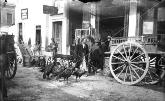 Στη φωτογραφία, η οποία ανήκει στο φωτογραφικό αρχείο της ΕΡΤ και αποτελεί μέρος της συλλογής «Πέτρου Πουλίδη» φαίνεται η αγορά του Ψυρρή ενώ διακρίνεται ένα οινοπωλείο.