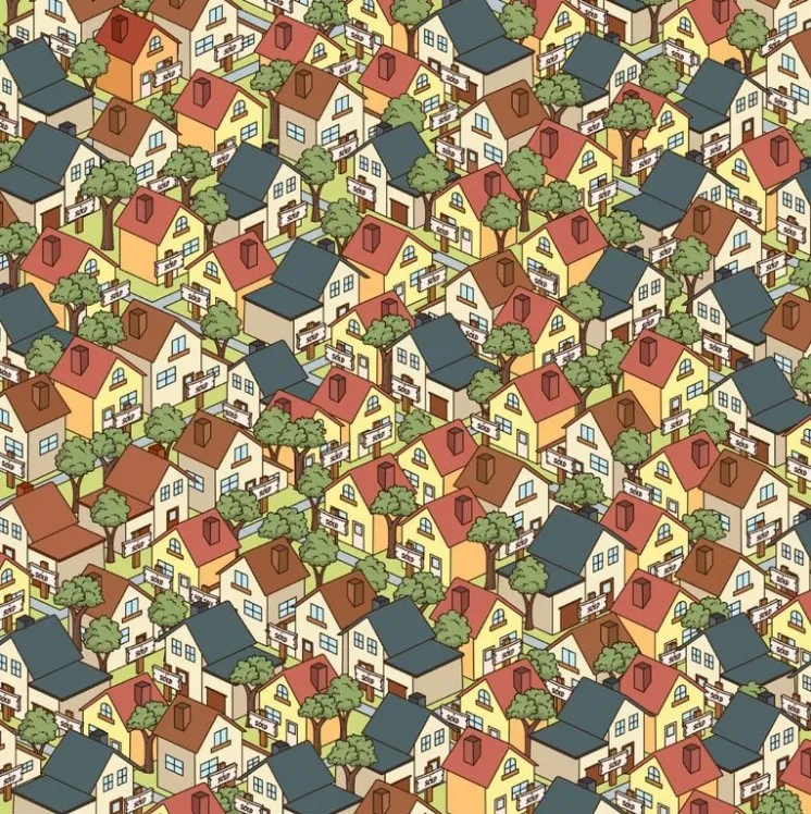 Η νέα οπτική ψευδαίσθηση, που έχει γίνει viral, έχει ξετρελάνει τους χρήστες του διαδικτύου. Είστε σε θέση να εντοπίσετε την πινακίδα “Προς Πώληση” ανάμεσα σε όλα αυτά τα σπίτια που έχουν ήδη πωληθεί; Αν ναι, πρέπει να έχετε τα μάτια ενός… μεσίτη που κυνηγά σαν λαγωνικό τις ευκαιρίες.