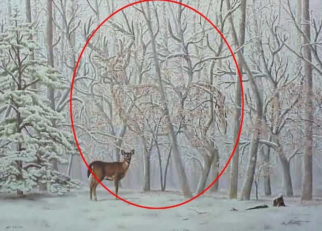 Το ελάφι είναι καμουφλαρισμένο με το περιβάλλον οπότε είναι δύσκολο να το εντοπίσετε. Κοιτάξτε την εικόνα προσεκτικά, από διαφορετικές οπτικές γωνίες, και προσπαθήστε να ψάξετε για πράγματα που φαίνονται περίεργα.