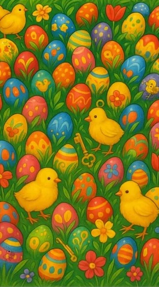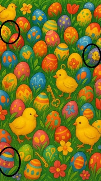 Στην παρακάτω εικόνα βλέπετε πολύχρωμα αυγά και κοτοπουλάκια. Κάπου κρύβονται δύο κουνέλια. Μπορείτε να τα βρείτε σε 6 δευτερόλεπτα;