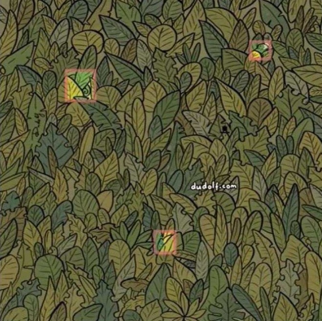 Οι χαμαιλέοντες είναι καμουφλαρισμένοι οπότε είναι δύσκολο να τους εντοπίσετε. Κοιτάξτε την εικόνα προσεκτικά, από διαφορετικές οπτικές γωνίες, και προσπαθήστε να ψάξετε για πράγματα που φαίνονται περίεργα.