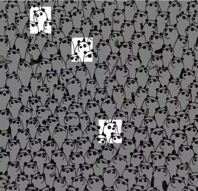 Στην παρακάτω εικόνα βλέπετε πολλά πάντα που φορούν γυαλιά ηλίου. Κάπου βρίσκονται τρία πάντα που δεν φορούν γυαλιά. Μπορείτε να τα εντοπίσετε σε μόλις 15 δευτερόλεπτα;
