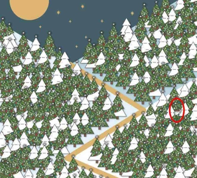 Στην παρακάτω εικόνα βλέπετε πολλά στολισμένα δέντρα. Κάπου βρίσκεται το ξωτικό των Χριστουγέννων. Μπορείτε να το εντοπίσετε σε μόλις 5 δευτερόλεπτα;