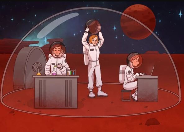 Η εικόνα δείχνει τρεις αστροναύτες στον κόκκινο πλανήτη. Δύο από αυτούς κάνουν πειράματα και ο τρίτος βγάζει το κράνος του. Κοιτάξτε προσεκτικά την εικόνα και προσπαθήστε να εντοπίσετε τι συμβαίνει με αυτήν.