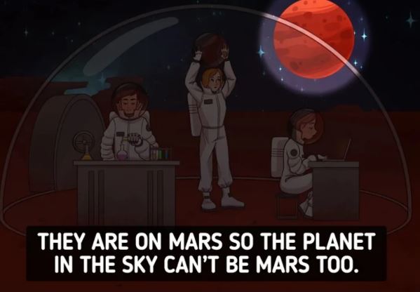 Αυτή η οπτική ψευδαίσθηση δεν είναι όπως οι περισσότερες οπτικές ψευδαισθήσεις, καθώς δεν υπήρχε ανάγκη να αναζητήσετε επιπλέον αντικείμενα ή κρυμμένες επιγραφές. Αρκούσε να γνωρίζουμε ότι ο Άρης ονομάζεται «κόκκινος πλανήτης».