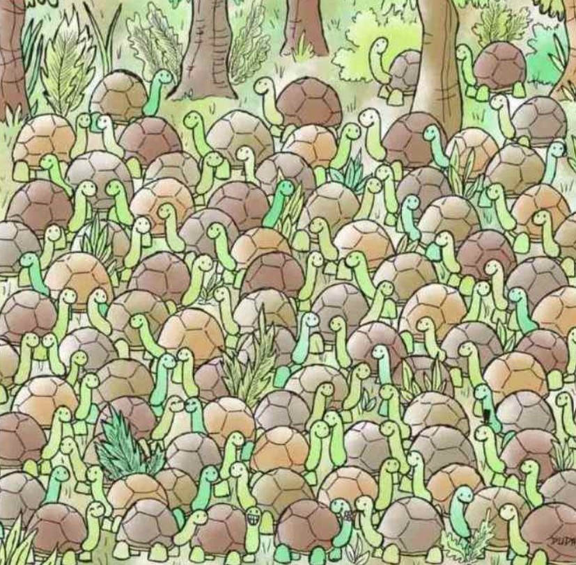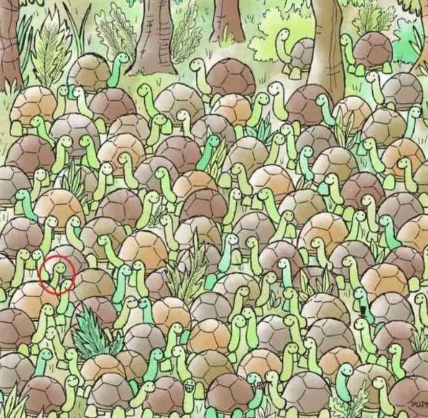 Στην παρακάτω εικόνα βλέπετε χελώνες. Κάπου βρίσκεται ένα φίδι. Μπορείτε να το εντοπίσετε μέσα σε 8 δευτερόλεπτα;
