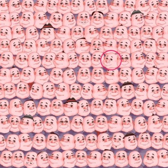 Στην παρακάτω εικόνα βλέπετε πολλά πρόσωπα. Κάπου βρίσκεται ένα γουρούνι. Μπορείτε να το εντοπίσετε σε μόλις 5 δευτερόλεπτα;