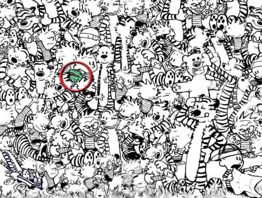 Ο δεινόσαυρος είναι καμουφλαρισμένος με το περιβάλλον οπότε είναι δύσκολο να τον εντοπίσετε. Κοιτάξτε την εικόνα προσεκτικά, από διαφορετικές οπτικές γωνίες, και προσπαθήστε να ψάξετε για πράγματα που φαίνονται περίεργα.