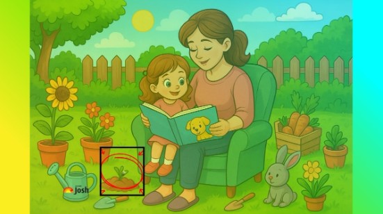 Στην παρακάτω εικόνα βλέπετε μία γυναίκα να διαβάζει παραμύθι στο παιδί της στο κήπο του σπιτιού της. Κάπου βρίσκεται μία τουλίπα. Μπορείτε να την εντοπίσετε σε μόλις 7 δευτερόλεπτα;
