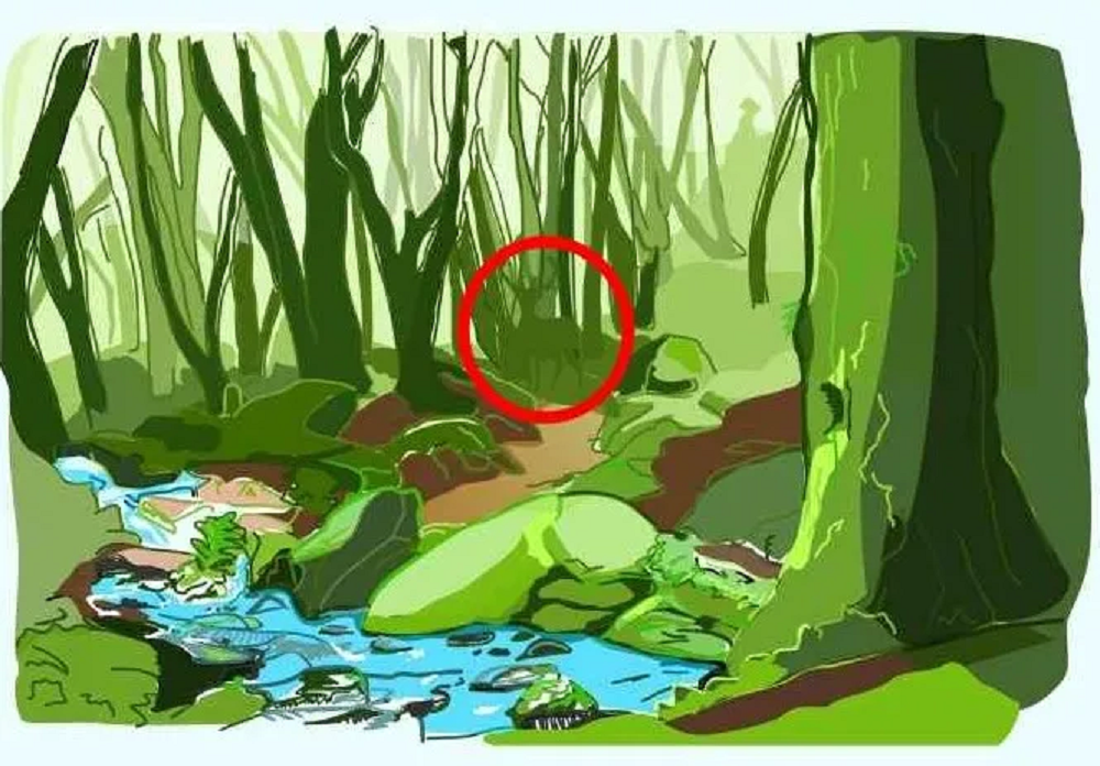 Στην παρακάτω εικόνα βλέπετε ένα δάσος με πολλά δέντρα και ένα ποτάμι να το διασχίζει. Κάπου μέσα στο δάσος βρίσκεται κρυμμένο και ένα ελάφι. Μπορείτε να το βρείτε μέσα σε 6 δευτερόλεπτα;