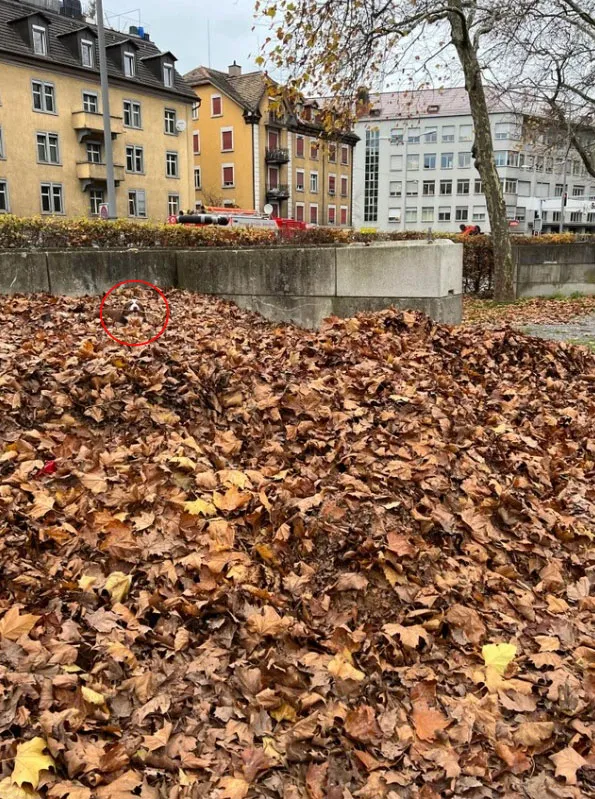 Είναι δύσκολο να εντοπίσετε τον σκύλο γιατί έχει σχεδόν το ίδιο χρώμα με τα φύλλα. Η φωτογραφία τραβήχτηκε στη Ζυρίχη της Ελβετίας, μια δροσερή μέρα του φθινοπώρου και το κουτάβι έχει κρυφτεί ανάμεσα στα φύλλα για να παίξει.