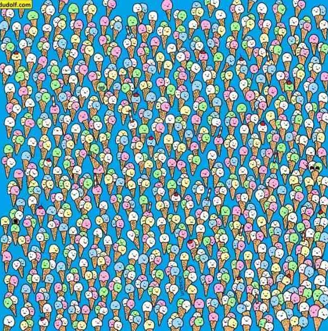 Στην παρακάτω εικόνα βλέπετε πολλά παγωτά σε διάφορα χρώματα. Κάπου βρίσκεται ένα γλειφιτζούρι. Μπορείτε να το εντοπίσετε σε μόλις 7 δευτερόλεπτα;