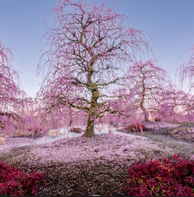 Στην παρακάτω εικόνα βλέπετε ανθισμένες κερασιές. Κάπου ανάμεσά τους κρύβεται ένα ροζ φλαμίνγκο. Μπορείτε να το εντοπίσετε σε μόλις 15 δευτερόλεπτα; Το τοπίο είναι ονειρικό, σαν παραμύθι, στρωμένο με πεσμένα πέταλα. Δεν είναι εύκολο να το εντοπίσετε, καθώς έχει  ίδια ακριβώς απόχρωση με τα άνθη της κερασιάς.