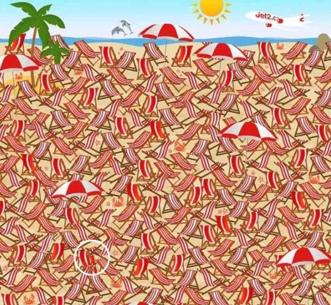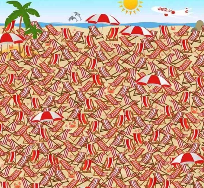 Στην παρακάτω εικόνα βλέπετε ξαπλώστρες σε μία παραλία. Κάπου κρύβεται ένα ζευγάρι πέδιλα για θαλάσσιο σκι. Μπορείτε να το βρείτε σε 6 δευτερόλεπτα;