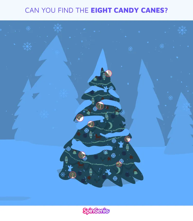 Σε αυτή την οπτική ψευδαίσθηση πρέπει να βρείτε και τα οκτώ ζαχαρωτά που είναι καλά κρυμμένα σε ένα πυκνά στολισμένο δέντρο. Φαίνεται εύκολο, αλλά δεν είναι γιατί έχετε πολύ λίγο χρόνο. Μόλις 10 δευτερόλεπτα.