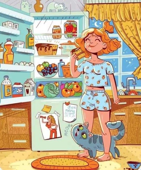 Στην παρακάτω εικόνα βλέπετε μία γυναίκα να τρώει μπροστά στο ψυγείο. Κάπου βρίσκονται μερικές μπανάνες. Μπορείτε να τις εντοπίσετε σε 7 δευτερόλεπτα;
