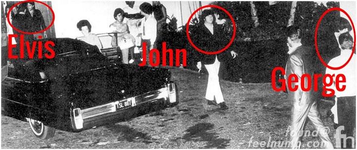 Οι Beatles πήγαν στην οικία του Elvis κατά τις 11 το βράδυ, με ένα κομβόϊ από τρεις μαύρες λιμουζίνες στην πρώτη εκ των οποίων επέβαινε ο “συνταγματάρχης”. Στον κήπο της έπαυλης ήσαν παρκαρισμένες μία Rolls Royce και μερικές Cadillac, ενώ μέλη της λεγόμενης “Memphis Mafia”, δηλαδή της παρέας του περιβάλλοντος του Presley, έκοβε βόλτες ανάμεσα στα λουλούδια και τα δέντρα. Ο “βασιλιάς” βρισκόταν στο μεγάλο κυκλικό σαλόνι, με τα κόκκινα και μπλε φωτιστικά, την έγχρωμη τηλεόραση να παίζει χωρίς ήχο, ένα jukebox, τον τεράστιο καναπέ, διάφορα επιτραπέζια παιγνίδια και ένα μπαρ.