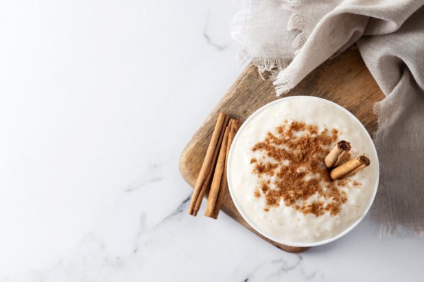 Αυτό το ρυζόγαλο μπορεί να μην περιέχει γαλακτοκομικά προϊόντα, αλλά οι μπανάνες και το γάλα ρυζιού το κάνουν τόσο κρεμώδες και με πλούσια γεύση, που κανείς δεν θα καταλάβει τη διαφορά.