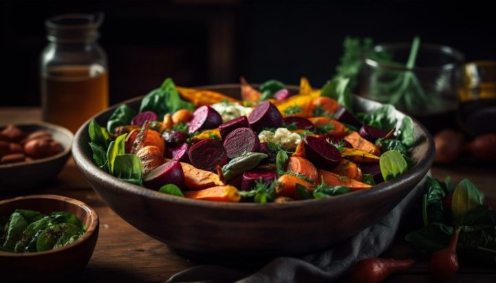Αυτή η σαλάτα είναι πλούσια σε αντιφλεγμονώδη συστατικά όπως κεράσια, λάχανο kale, αβοκάντο και, φυσικά, γλυκοπατάτες, οι οποίες περιέχουν αντιοξειδωτικά, φυτικές ίνες, βιταμίνες και μέταλλα προστατεύοντας από την φλεγμονή. Μην παραλείψετε το βήμα του μασάζ με το ντρέσινγκ στο λάχανο. Αυτό το βοηθά να μαλακώσει και να απορροφήσει τη γεύση από το γλυκόξινο ντρέσινγκ.