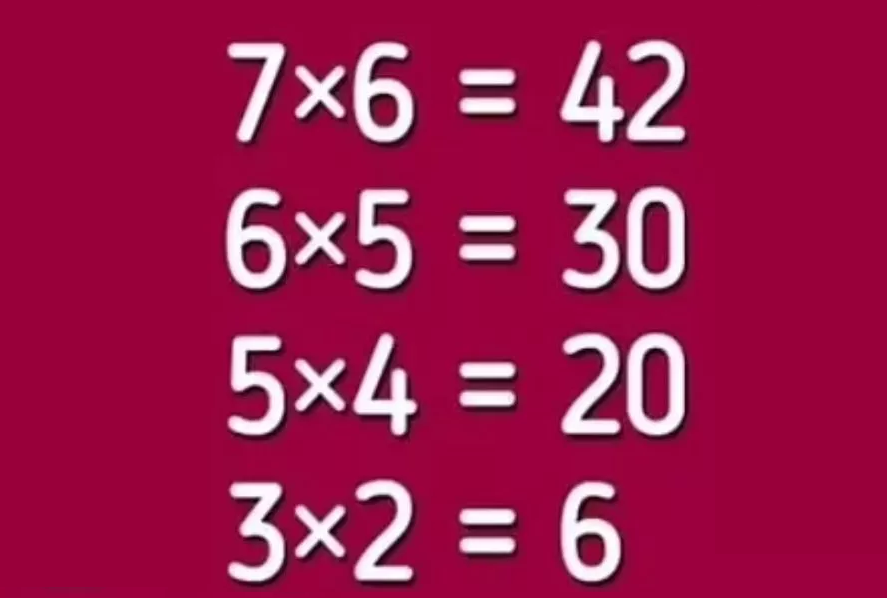 Για να βρείτε την σωστή απάντηση πρέπει να παρατηρήσετε την σύνδεση που έχουν μεταξύ τους οι αριθμοί. Ο κανόνας της ακολουθίας ήταν ότι κάθε αριθμός, που βρίσκεται στα αεριστερά πολλαπλασιάζεται με τον προηγούμενο αριθμό και βγαίνει ο αριθμός που είναι στα δεξιά. Για παράδειγμα, στο 7 = 42, οι πράξεις είναι 7 x 6 = 42. Για το 6 = 30, είναι 6 x 5 = 30, και για το 5 = 20, είνια 5 x 4 = 20.